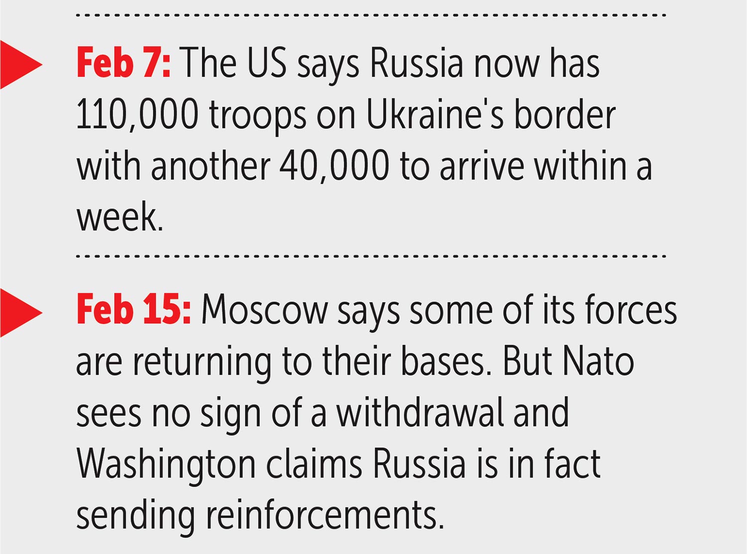 Weeks of intense diplomacy failed to deter Mr Putin, who massed over 150,000 troops on Ukraine’s borders in what the West said was the biggest military build-up in Europe since the Second World War.